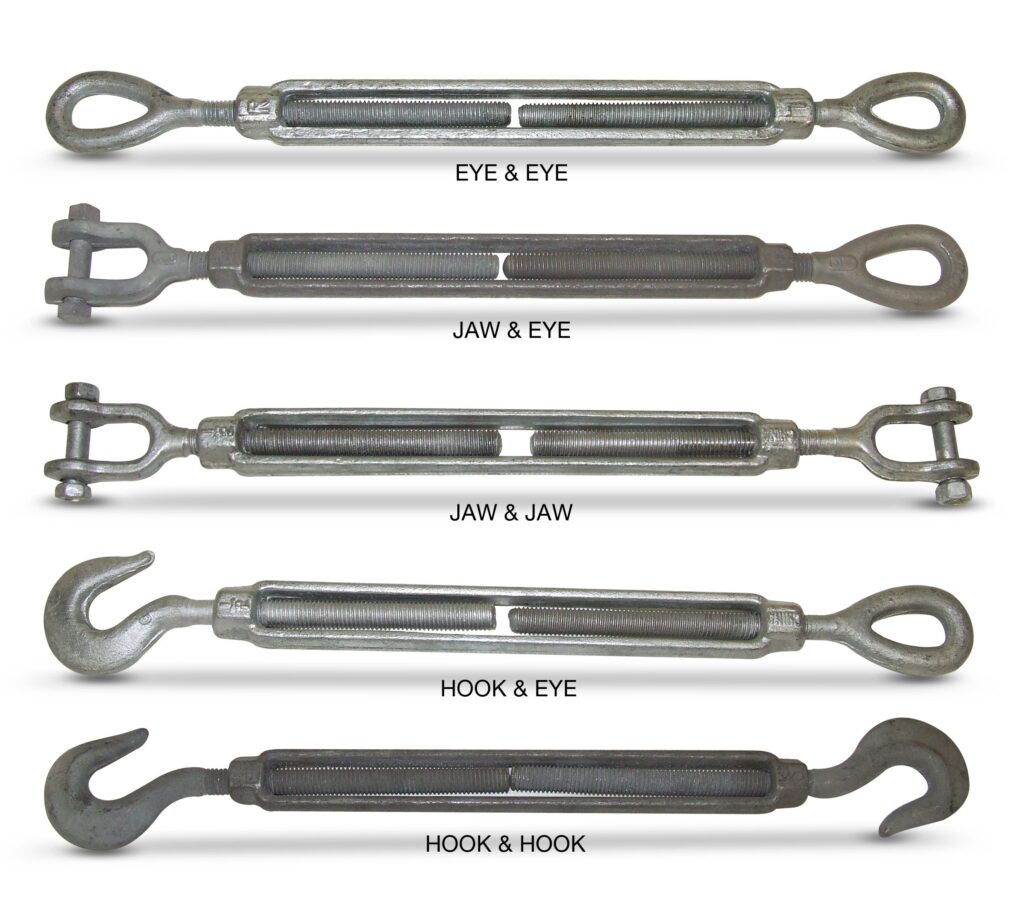 Hook and Eye (HE): Combine an open hook for quick attachment/removal and a closed eye for a stable anchor. These are frequently used for temporary setups or periodic tensioning.